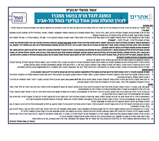 הזמנה לנהל משא ומתן בפטור ממכרז- שוק הנמל